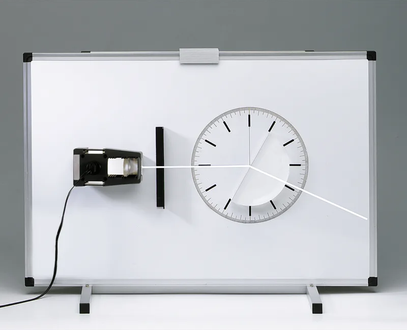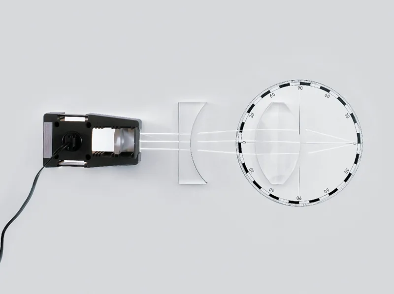 U kompletu se nalaze: optička lampa 12 V / 20 W sa sabirnom lećom i 1/3 optičke rešetke (2 komada); baza za povezivanje dviju optičkih lampi; zaobljeno stakalce, 150 × 75 × 15 mm; sjenilo, promjera 80 mm i visine 40 mm; par strelica, dužina 40 i 80 mm; ravno zrcalo, dužine 140 mm; prilagodljivo konkavno/konveksno zrcalo, dužine 140 mm; optički disk na magnetskoj podlozi, promjera 220 mm; zakrivljeni zaslon, 90 × 90 mm; komplet od 4 zaslona; komplet od 3 filtra u boji – crveni, zeleni, plavi; model polukruga, polumjera 70 mm; dva komada modela plankonveksne leće, polumjera 100 mm; model plankonkavne leće, polumjera 100 mm; model pravokutne prizme, duljine hipotenuze 100 mm; model trapezastog oblika 60°/90°, dužine 140 mm.